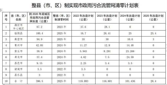 濰坊市城市排水“兩個(gè)清零、一個(gè)提標(biāo)”實(shí)施方案