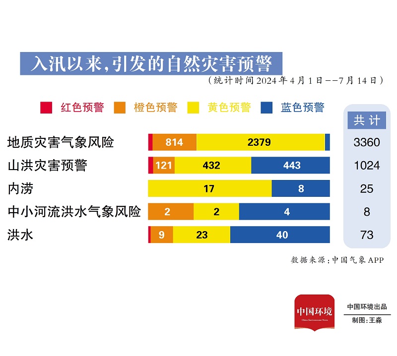 僅在6月份,南方地區(qū)經(jīng)歷了多輪強(qiáng)降雨天氣過程,中央氣象臺(tái)從6月10日開始連續(xù)21天發(fā)布暴雨預(yù)警,其中4天發(fā)布了最高級(jí)別的暴雨紅色預(yù)警。全國(guó)共發(fā)布紅色預(yù)警信息1969條,其中暴雨紅色預(yù)警信息占全部的45.7%,同比增加61.1%。