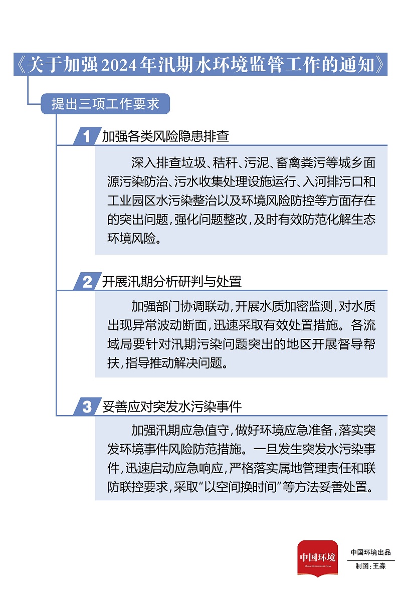 同時(shí),極端降水對(duì)于環(huán)境風(fēng)險(xiǎn)防控工作帶來不小的挑戰(zhàn)和壓力。目前,生態(tài)環(huán)境部對(duì)汛期環(huán)境監(jiān)管和突發(fā)環(huán)境事件應(yīng)對(duì)作出安排部署,印發(fā)《關(guān)于加強(qiáng)2024年汛期水環(huán)境監(jiān)管工作的通知》,要求各地進(jìn)一步加強(qiáng)汛期水環(huán)境監(jiān)管,防范汛期水環(huán)境質(zhì)量惡化以及發(fā)生重大水污染事件,切實(shí)保障飲水安全。生態(tài)環(huán)境部生態(tài)環(huán)境應(yīng)急辦主任李天威表示,明確要求各地參考國(guó)控?cái)嗝鏆v年汛期水質(zhì)數(shù)據(jù)和集中式飲用水水源地水源環(huán)境狀況調(diào)查評(píng)估的情況,確定本行政區(qū)域汛期重點(diǎn)關(guān)注斷面和飲用水水源地,識(shí)別斷面匯水范圍內(nèi)影響水質(zhì)以及飲水安全的主要污染源。