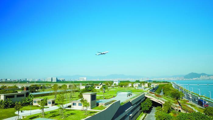 高崎水質(zhì)凈化廠位于廈門本島高崎機場以南,通過半地下集約式的建設形式,上層建設屋頂花園、中間層設為運營維護空間、地下層布置污水污泥處理構筑物和管道,將城市景觀、運營維護、污水處理三大功能上下疊合,從空間上高效利用土地資源,實現(xiàn)20萬噸/日的處理規(guī)模。同時,為廈門本島高崎機場T4航站樓的開發(fā)預留景觀延伸帶,將稀缺景觀資源帶給市民,構建了“人水和諧”的全新生態(tài)空間。