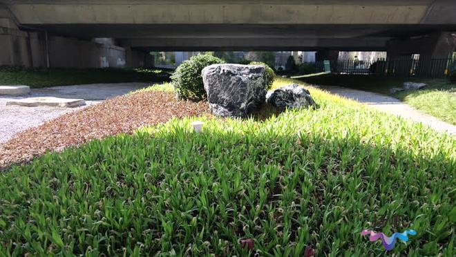 現場,記者看到,在濱河路以東的橋下空間,工人們正在栽植最后一批地被植物,同時對路面進行鋪裝。在雨水花園內,千屈菜、鼠尾草、芒草、八角金盤等耐陰耐濕植物組成的"生態濾網"已經組成,輔以景觀石子減緩水流,同時一旁還有溢流井銜接市政雨水管網進行排水。據了解,目前整個配套工程的綠化已經基本完成,還剩局部的一些位置交叉施工,進行收尾,此外還剩一些廣場的透水混凝土鋪裝以及便民游樂設施的成品安裝工作,預計本月底下月初全部竣工驗收。