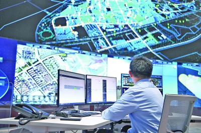 工作人員在中新天津生態(tài)城智慧城市運(yùn)營(yíng)中心內(nèi)監(jiān)控。新華社發(fā)